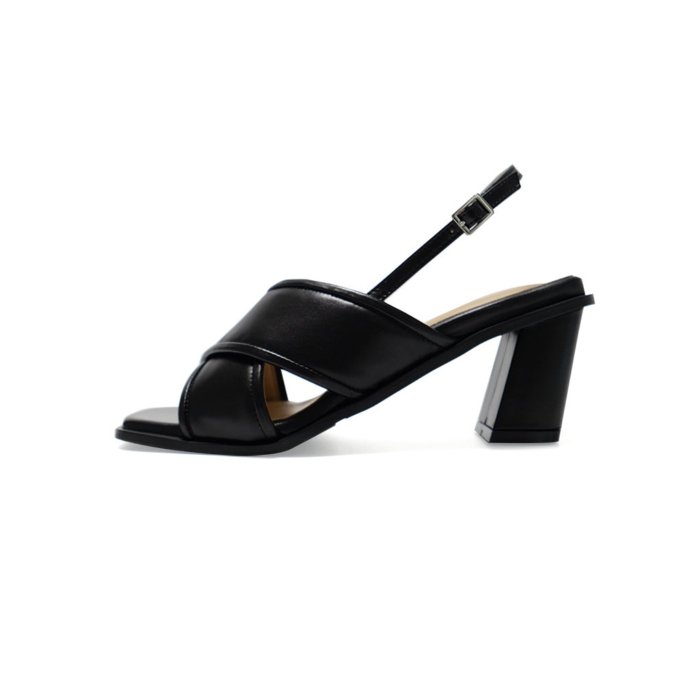 얇은 쿠션이 들어간 엑스 스트랩이 발볼을 포근하게 감싸주며 유니크한 굽이 매력적입니다.