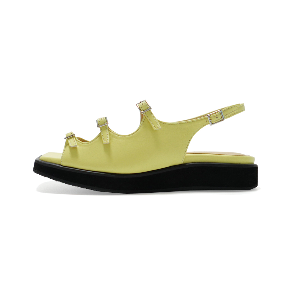 얇은 쿠션이 들어간 엑스 스트랩이 발볼을 포근하게 감싸주며 유니크한 굽이 매력적입니다.
