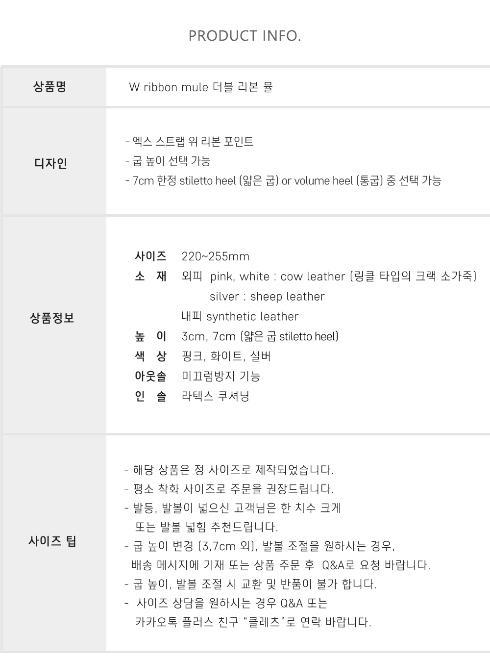 - 사이즈가 애매하신 고객님은 Q&A 또는 카카오톡 플러스 친구 "클레츠"로 사이즈 상담 요청 바랍니다.