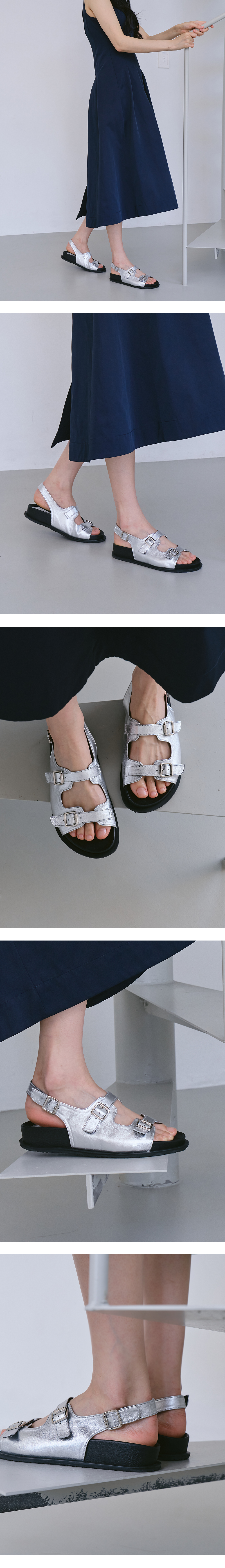 dual strap sandals - silver